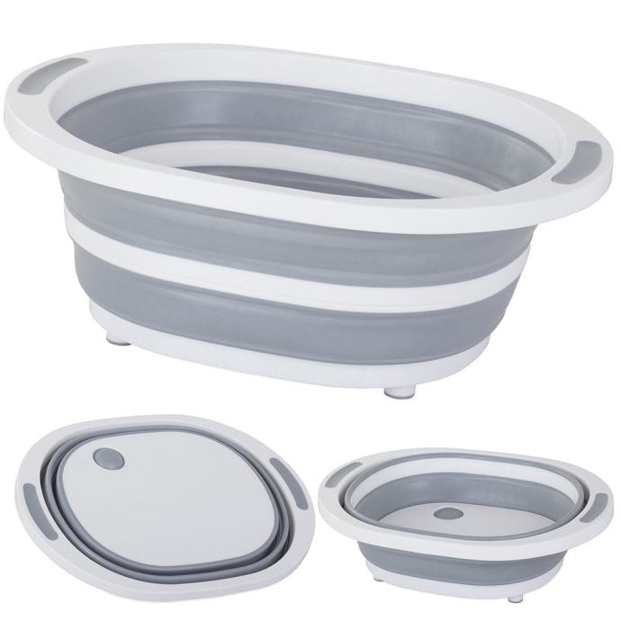Predstavljeni proizvod bit će savršen za svako kućanstvo. Sklopni spremnik je sjajno rješenje kada nam nedostaje prostora u jednom koritu ili kada moramo oprati voće ili povrće. Zahvaljujući nogama bez klizanja, zdjela je stabilna i ne prevrće se. Odvodnja se brzo nepromijenjena u sekundi. Kad preklopite zdjelu, pretvara se u vrlo zgodnu ploču za rezanje.