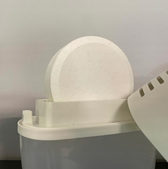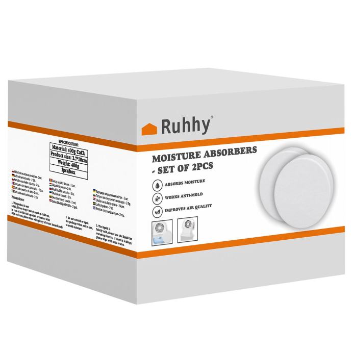 Opskrbljena 2 spremnika - komplet uključuje 2 okrugla umetka. Jedan uložak teži čak 400 g. Kada kupite komplet, imate do 90 dana apsorpcije vlage.