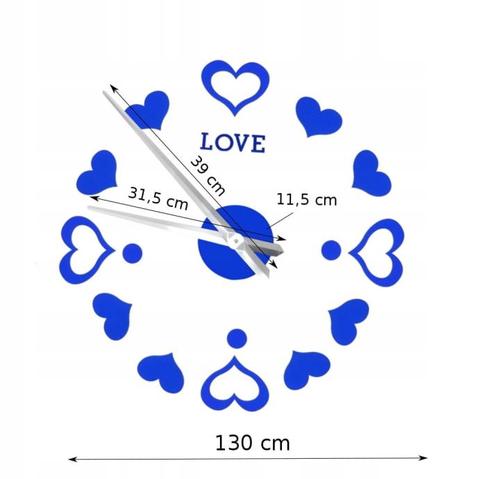 Minimalna veličina sata je 65 x 65 cm, u tom slučaju pokazatelji preklapaju brojeve.