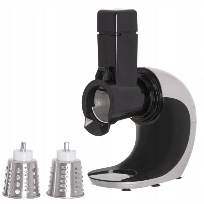 Rezač povrća s različitim glavama: rezač je opremljen s tri glave koje vam omogućuju da odrežete povrće na tanke kriške, mljeveći s velikim rupama i izrađuju rešetke s pireom. Savršen je za brzu pripremu salata, salata od kupusa, pa čak i za mljevenje sira ili čokolade.