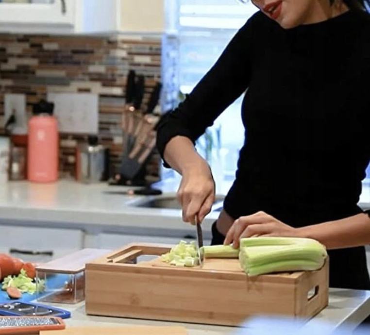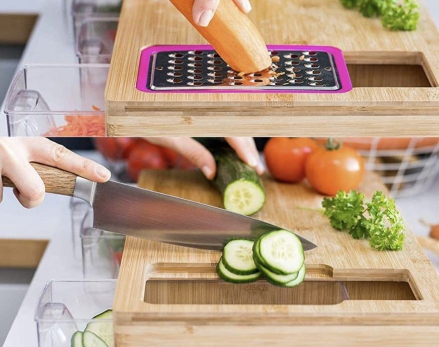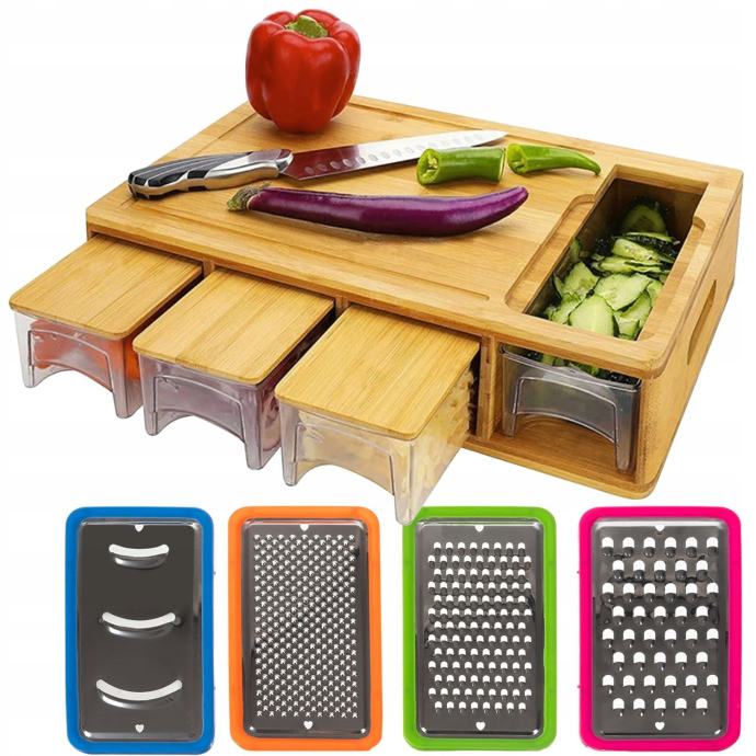 Predstavljamo kuhinjsku ploču od bambusa, što je više od redovne ploče za rezanje. Ovaj inovativni proizvod kombinira funkcionalnost rezača, povrća strugača i spremnika, omogućujući vam da se lako pripremite i pohranjuju sastojke tijekom kuhanja. Napravljen je od visokokvalitetnog bambusa koji je održiv, otporan na rezanje i istodobno oštricu.