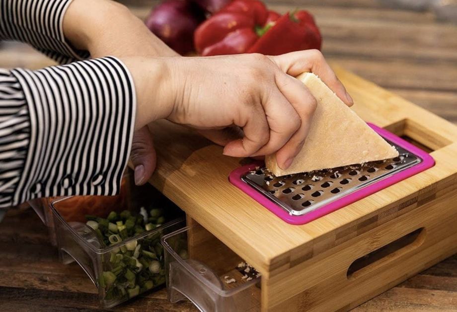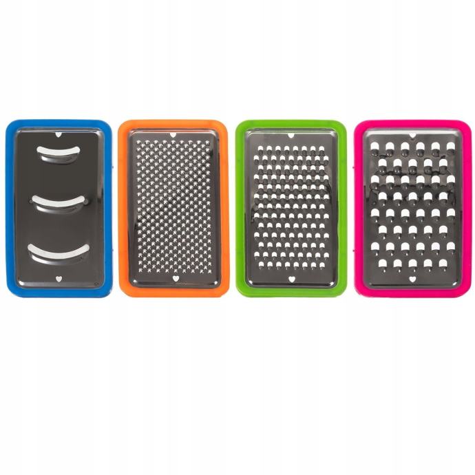 4 ogrebotine- Ploča ima posebnu udubljenu strugaču olakšava i brzo čitanje različitih sastojaka izravno na ploči, sve pada izravno u košaru. Komplet uključuje 4 strugače različitih debljina u različite svrhe.