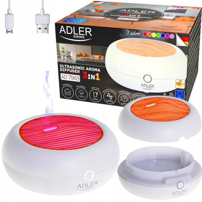 Cijenite li aromaterapiju i uživate u korištenju mirisa koji poboljšavaju vaše dobro? USB 3V1 ultrazvučna aroma difuzor Adler AD 7969 pomoći će vam da učinkovito i brzo prskate. Estetski i izrađeni od visokokvalitetnih materijala pružit će vaše raspoloženje i zdravlje vaših najmilijih.