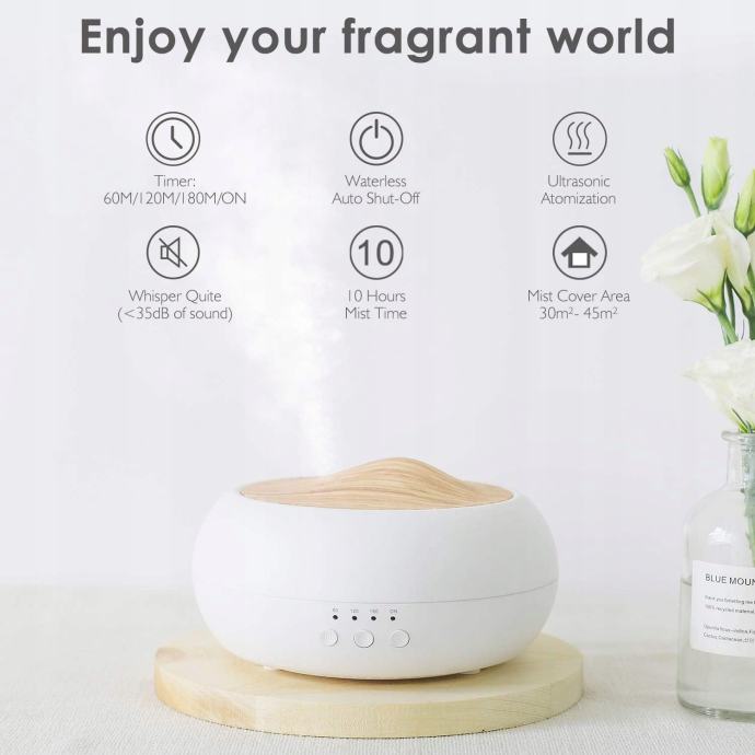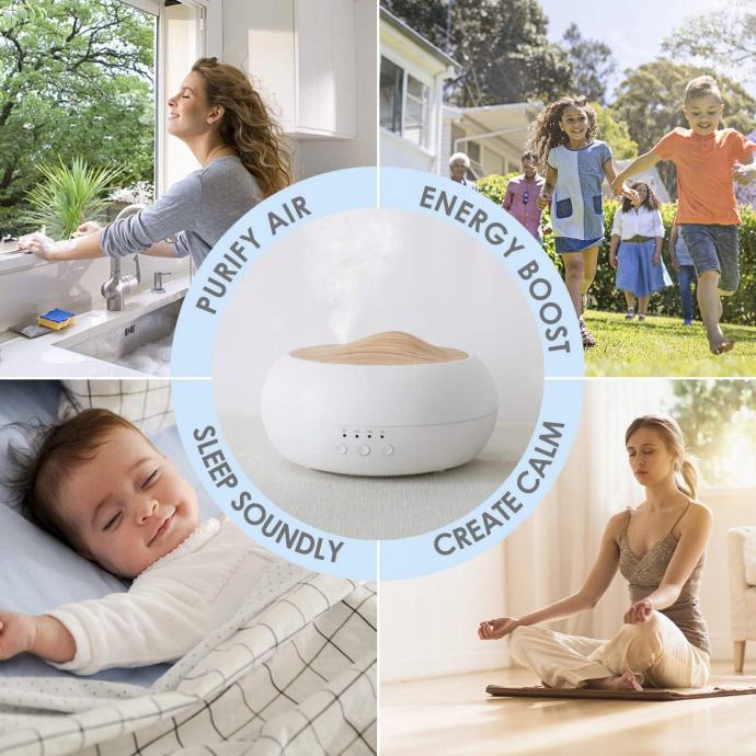 Ultrazvučna tehnologija omogućuje brzu raspodjelu mirisa, koja nosi fragmentirane čestice vode pomiješane s esencijalnim uljem. Ugodan miris poboljšava raspoloženje, pomalo navlaženi zrak olakšava koncentraciju i zaspi, atmosferska svjetlost će učiniti rad i opuštanje ugodnijim.