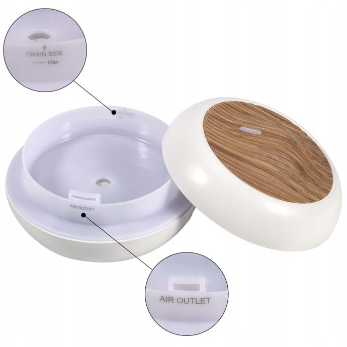 Ako volite svjetlo u boji i koristite terapiju boja, naš difuzor može vas iznenaditi! Odaberite između sedam boja ili ih postavite na razmjenu. Duljina kabela za napajanje je 100 cm, tako da uređaj lako možete postaviti na željeno mjesto. Bijeli, drveni završni elementi i jednostavan i estetski dizajn čine ga dodatnim elegantnim ukrasom svake sobe!