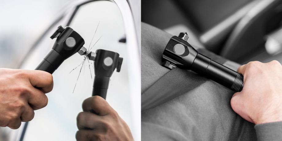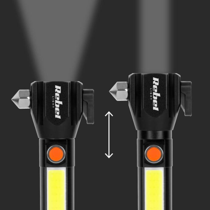 Svjetiljka je opremljena izdržljivim čekićem dizajniranim za razbijanje stakla za hitne slučajeve, što je posebno korisno u nesrećama ili u situacijama u kojima je potrebno brzo djelovanje.