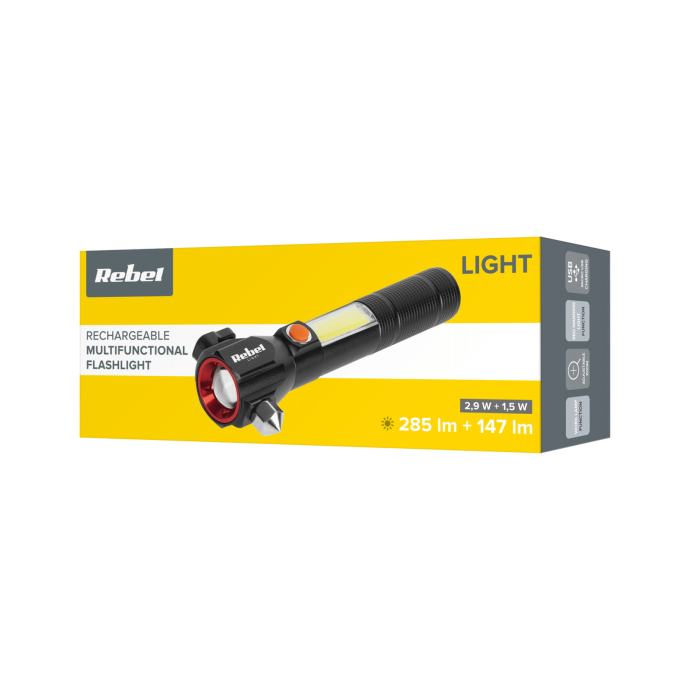 Udobna upotreba pobunjeničke svjetiljke pruža dva izvora svjetlosti. Prvi LED s snagom od 2,9 W stvara 200 m snopa i protok od 285 lm. Bočna svjetlost kabine sa snagom od 1,5 W je blistavo sa svjetlošću od 147 lm. Uređaj se može koristiti kao radna svjetiljka, što je posebno korisno u slučaju obnove ili rada u garaži ili na otvorenom.
