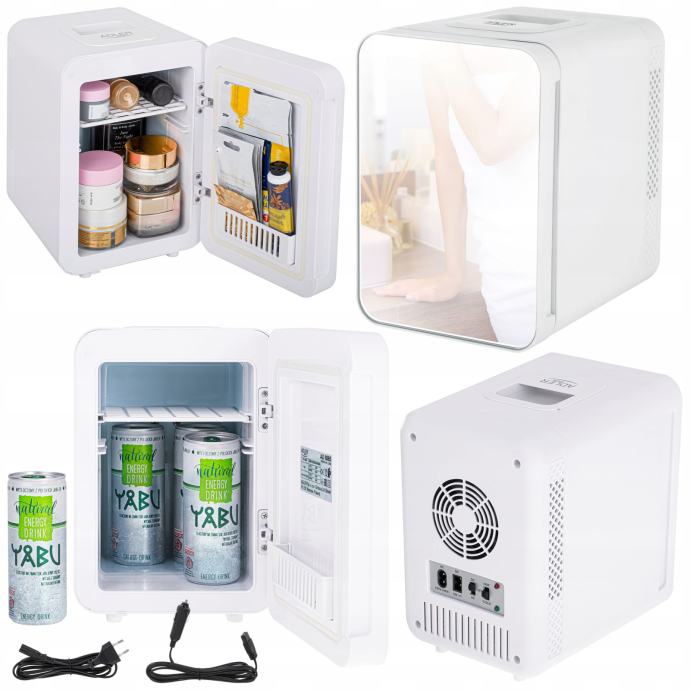 Glavna funkcija našeg hladnjaka je funkcija hlađenja i grijanja, koje su dostupne u jednom uređaju. Zahvaljujući aluminijskim elementima komore, hladnoća i toplina dopiru do svih proizvoda u hladnjaku. Temperatura hlađenja je oko 18-22 °C ispod temperature okoline, a temperatura grijanja je iznad 18-22 °C. Na ovaj način možete hladiti mineralnu vodu, gazirana pića, povrće i slastice te čuvati mesne i mliječne proizvode. Opcija grijanja pomoći će u održavanju temperature ili zagrijavanju odabranog jela. Mini hladnjak bit će praktičan na dugim putovanjima i idealan je poklon za profesionalne vozače i vlasnike parcela. Dobro će izgledati i u spavaćoj sobi ako kreme i druge kozmetičke proizvode želite održavati na odgovarajućoj temperaturi. Njegov dizajn čini ga samim sobom ukrasom. Ogledalo će optički povećati prostor te reflektirati dnevnu svjetlost i osvijetliti mračne prostorije.