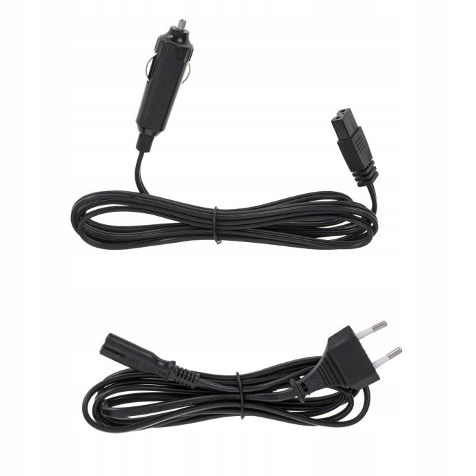 Set sadrži strujne kablove za spajanje hladnjaka na DC 12V utičnicu i AC 220-240V utičnicu
