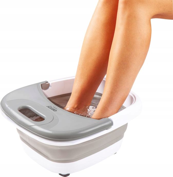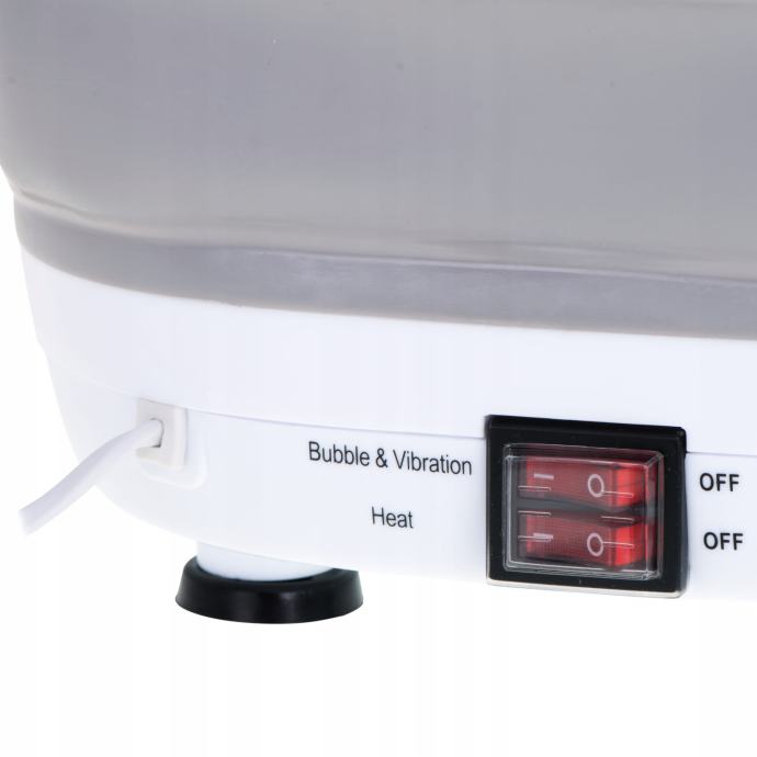 Preklopni uređaj za masažu -noga s nogom s ručicom za nosač. Savršeno za liječenje i masaže za njegu i opuštanje koji daju učinak terapijske masaže odmarali i krvavi stopala. Omogućuje različite vrste masaža. Masaža mjehurića smanjuje stopala stopala kao u mini jacuzzi. Masaža vibracija djeluje slično kao akupresuru masirajući obuću. Uređaj za omekšavanje kože olakšava njegu stopala. Funkcija automatskog grijanja sprječava hlađenje. Udobna konstantna temperatura u rasponu od 43-45 ° C daje opuštajuću toplinu i olakšava njegu.