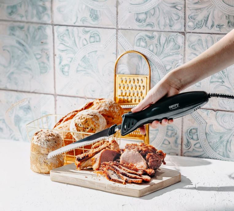 Električni nož nudi ergonomski dizajniranu ručku koja pruža udoban prianjanje i stabilnost tijekom rezanja. Pritiskom na gumb, noževi počinju automatski raditi, smanjujući napor prilikom rezanja i pružanja ujednačenih kriški uz minimalan napor. Nož je lako očistiti, jer se noževi mogu sigurno ukloniti i oprati pod tekućom vodom.