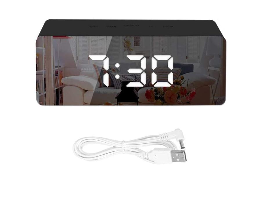 4V1 USB elektronički budilica s termometrom i zrcalom crnim