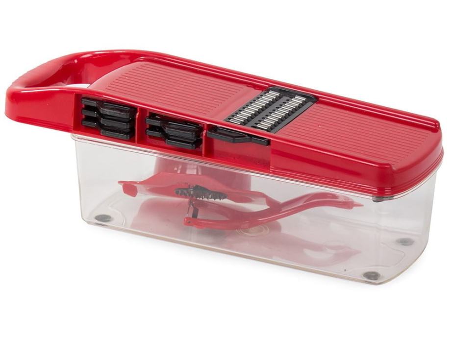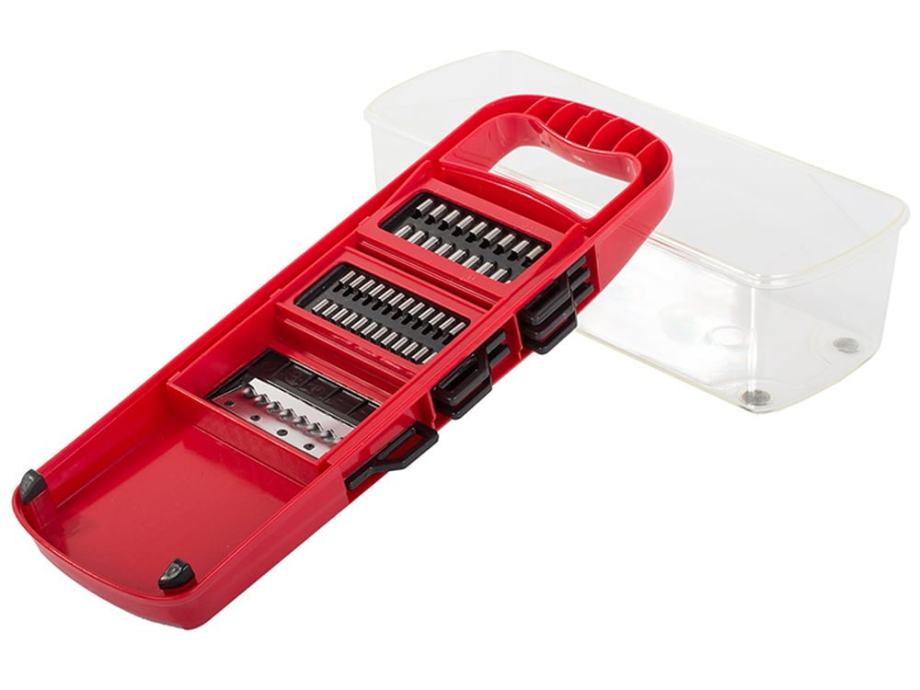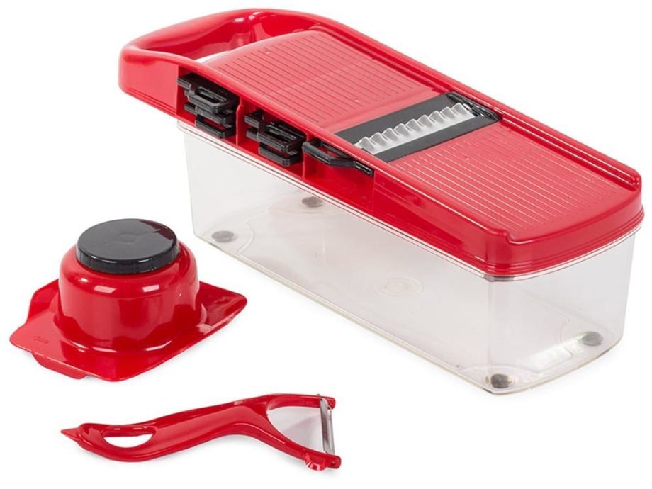 Multifunkcionalni strugač s posudom, s oguljivanjem i ručicom za držanje proizvoda koji pružaju samo prednosti i olakšava rad u kuhinji. Savršeno se reže, mljeve se povrće i voće za ukusnu salatu ili druga popularna jela.