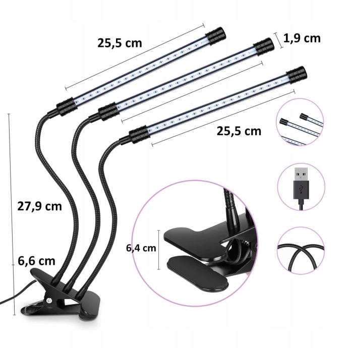 Jednostavno podešavanje i upotreba nagiba- LED LED LED podržava rast, pucanje i cvjetanje biljaka. Valnu duljinu koju emitira može u potpunosti apsorbirati biljke za fotosintezu. Pričvrstite svjetiljku na odabrano mjesto i spojite je na USB priključak. Pritisnite prekidač za uključivanje i smjesa crvene i plave svjetlosti će se upaliti. Prekidač ima privremene funkcije osvjetljenja, promjenu svjetlosti i svjetlosnu snagu. Pored toga, metalne šipke ploča mogu se prilagoditi u željenom kutu kako bi se povećala učinkovitost osvjetljenja.