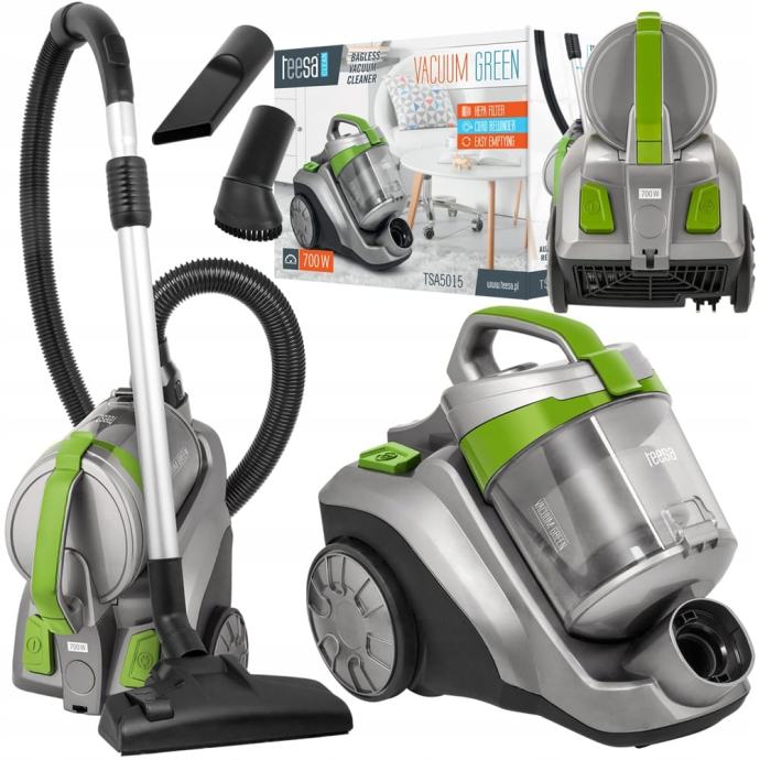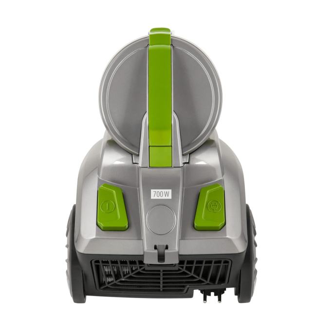 Vacuum Green je visokokvalitetna torba bez torbe, opremljena motorom od 700 W koji će vaš stan učiniti čistom. Učinkovitost učinkovitosti usisavanja A na tvrdim podovima osigurava da uređaj lako skuplja prašinu iz utora između pločica i drvenih površina.