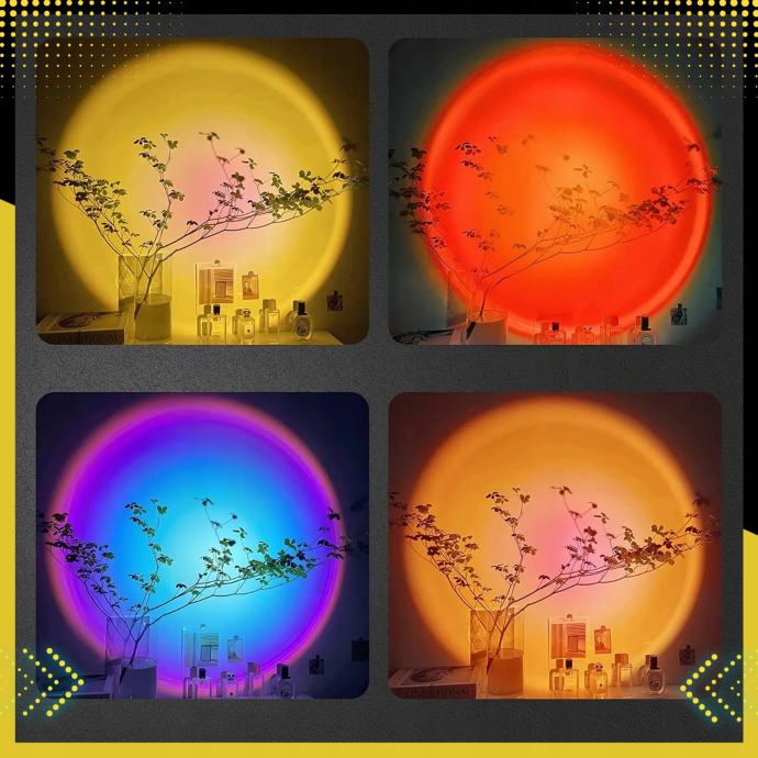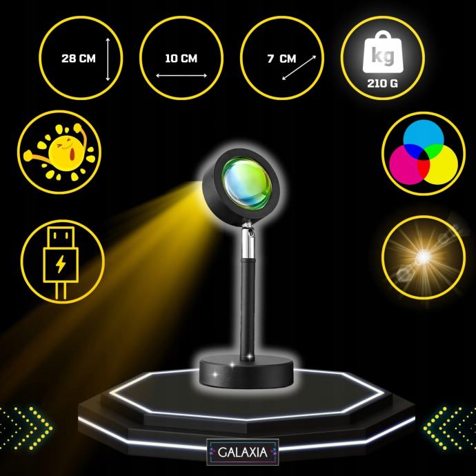 Svjetiljka koja oponaša zalazak sunca s funkcijom promjene boja RGB -a daje vam još više mogućnosti za prilagođavanje osvjetljenja različitim situacijama i fotografskom stilu. Zahvaljujući tome, možete dobiti različite nijanse toplih boja, od više narančaste do više ružičaste ili ljubičaste boje, omogućujući još veću slobodu i kreativnost da stvore fotografije. Osim toga, RGB svjetiljka može poslužiti kao zanimljiv ukrasni element koji će u sobu donijeti udobnu atmosferu i atmosferu.
