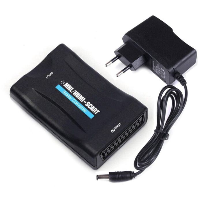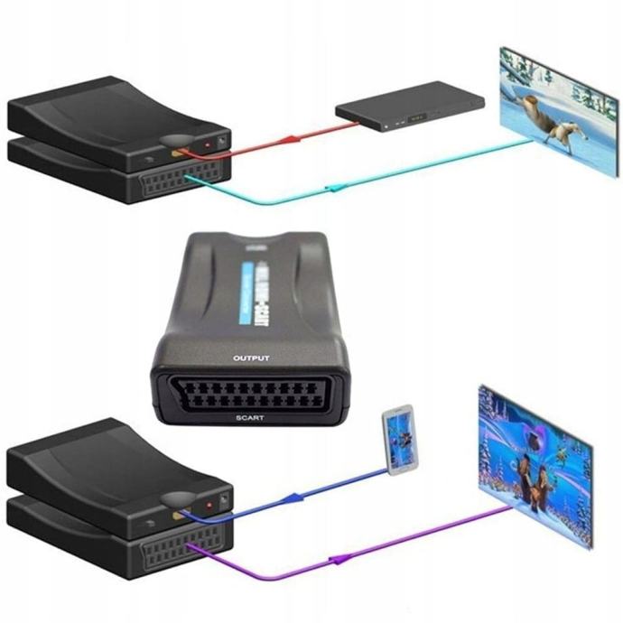 HDMI adapter u SCART -u je mali uređaj koji se koristi za pretvaranje digitalnih slika i zvuka u analogni. Ova je značajka korisna za ljude koji imaju dekodere, konzole, fotoaparate ili druge uređaje s HDMI vezom i željeli bi reproducirati sliku i zvuk koji stvaraju, na TV -u ili monitoru nešto starije generacije s SCART vezom.