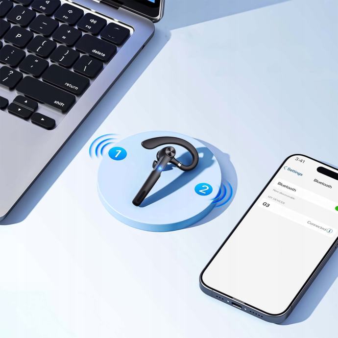 Zahvaljujući ergonomskom obliku, slušalica je ugodna za dugoročnu upotrebu, što vam omogućuje da sigurno i udobno nazovete tijekom vožnje ili dok imate slobodne ruke za druge poslove. Dosegnuvši 10 metara, uređaj možete ostaviti na sigurnom mjestu i slobodno se kretati bez gubitka veze. Osim toga, postoji prikladna prijenosna kutija za punjenje s izgrađenom bankom u napajanju, koja vam omogućuje da brzo napunite slušalicu bilo gdje, bez potrebe za pronalaženjem utičnice.