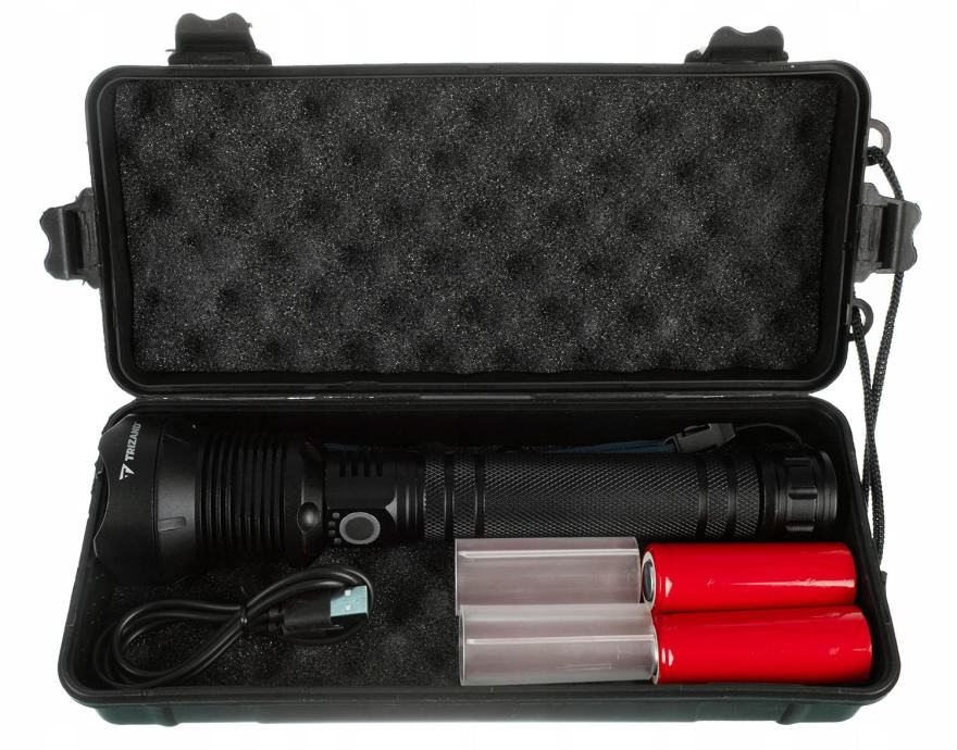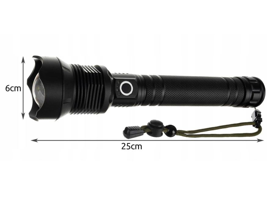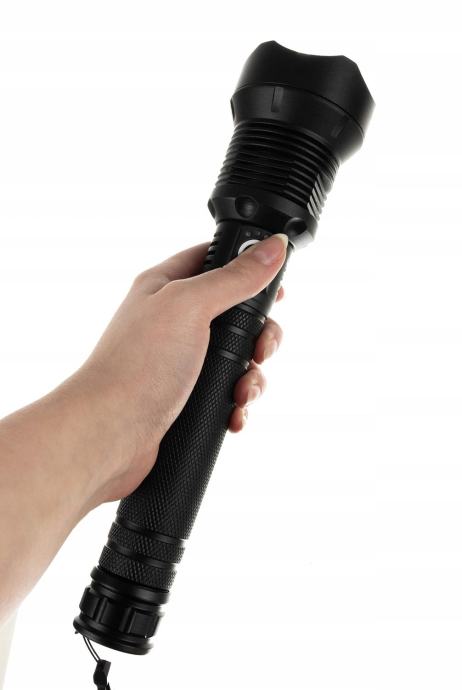 Specifikacija- materijal: aluminij; Duljina protoka svjetlosti: 500m; dioda p70; 3 načina osvjetljenja; Baterija: 2 x 6800mah; Snaga: 4500 lumena; Dimenzije: 25 x 6 cm; Težina: 0,504 kg