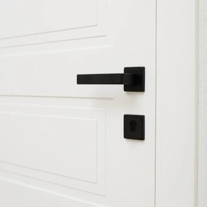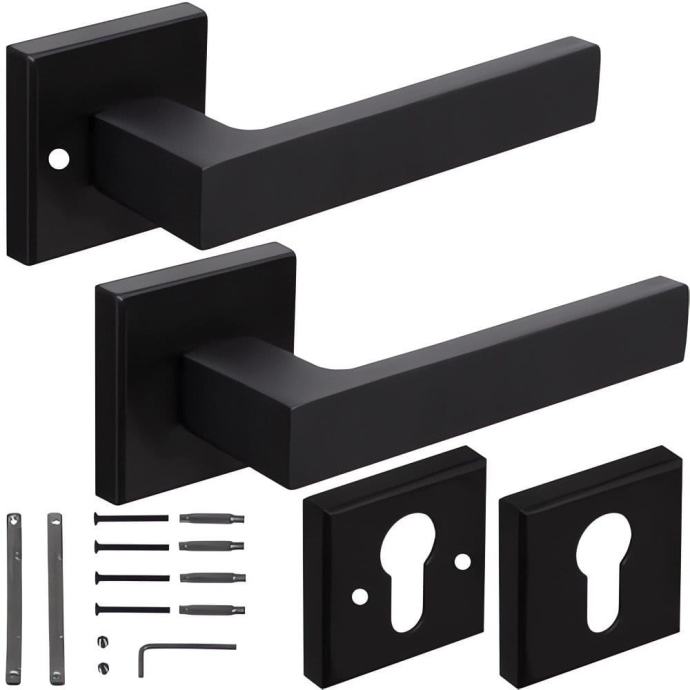 Kuka crnih vrata na podijeljenoj ploči ima Matt potkrovlje. Izrađena je od željeza i aluminija. Kuka po kvadratnoj rozete s izuzetnom ergonomijom odlično će funkcionirati na vratima. Kuka se uklapa u vrat sa simetričnim okvirima ili ostakljenjem. Posebno profilirana ručka pruža ugodnu upotrebu.