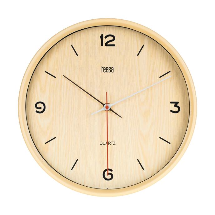 Sat se može pohvaliti velikim brojevima i jasno čitljivim arapskim brojevima koji olakšavaju vrijeme čitanja, čak i iz daljine. Klasični analogni mehanizam osigurava preciznost i miran rad, što ga čini savršenim za bilo koji prostor, uključujući dnevni boravak, kuhinju, spavaću sobu ili ured. Svijetlo smeđi okvir daje sat topao i ugodan izgled koji se lako stapa s različitim uređenjem interijera, od suvremenog do tradicionalnog.