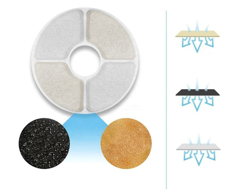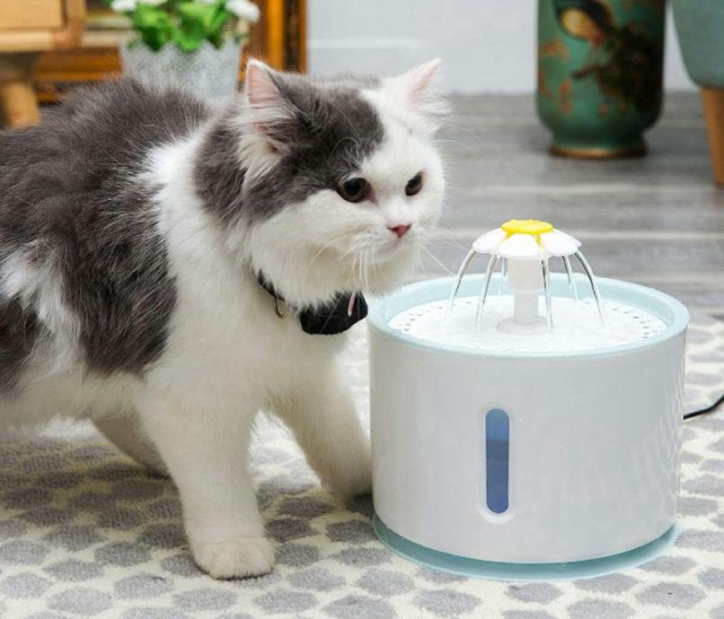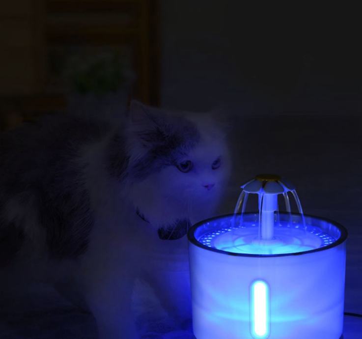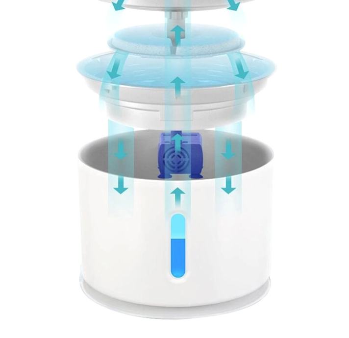 Automatsko napajanje kućnih ljubimaca. Atraktivan dizajn fontane s više mlaznica. Veliki spremnik vode s kapacitetom do 2,4 litre omogućuje dugotrajnu upotrebu. Sustav filtra (s zamjenjivim filterom) pruža svježu i čistu vodu za našeg ljubimca. Pijani je opremljen tihom i učinkovitom pumpom, a uređaj može uspješno raditi noću. Uređaj ima tri različita načina rada (protok vode). Sigurnost upotrebe povećava se automatskim isključenim funkcijama i signalizacijom niske vode (pomoću LED rasvjete).