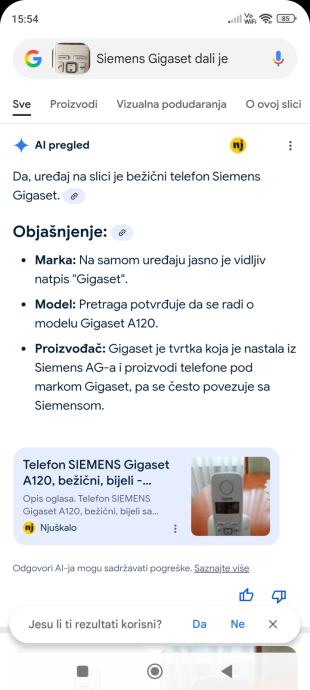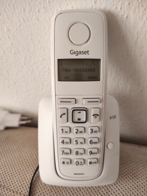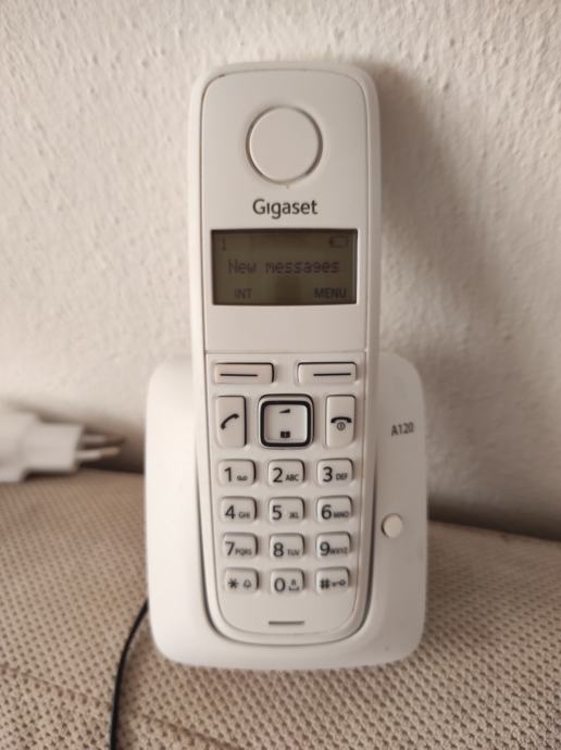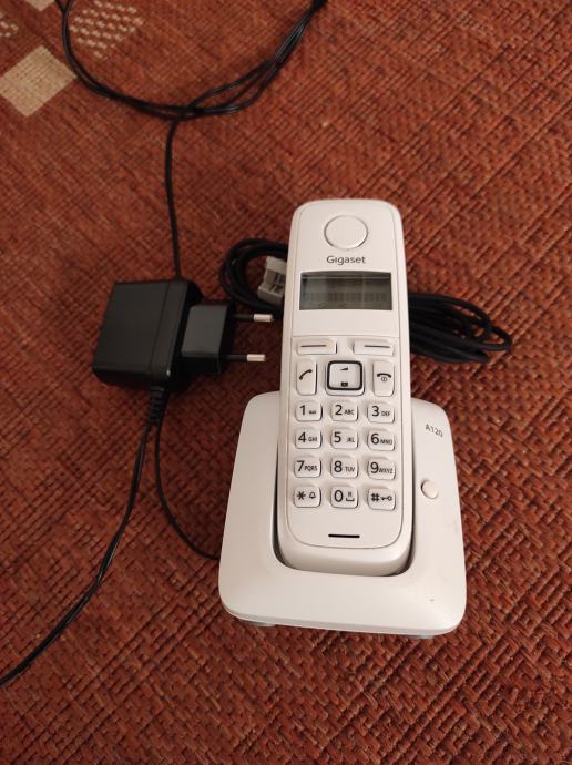 Dobar bežicni telefon GIGASET A120,Njemački telefon,sve uredno radi,vise u opisu u slikama.Moze doseći do 300 metara od kucišta,.Za sve informacije nazovite na broj 097-6601365 ili pošaljite upit na Viber ili Njuskalo, a Šaljem Poštom ili Tiskom ili u dogovoru sa kupcem.Vidi slike!!