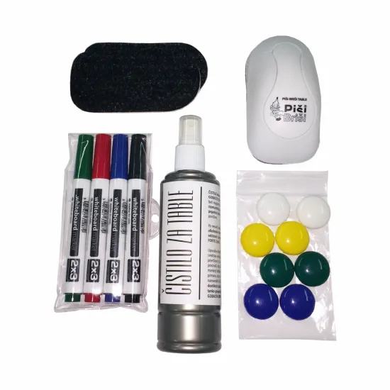 Uz nju dolaze i 4 markera, alu polica za markere, magnetići i spužva za brisanje...