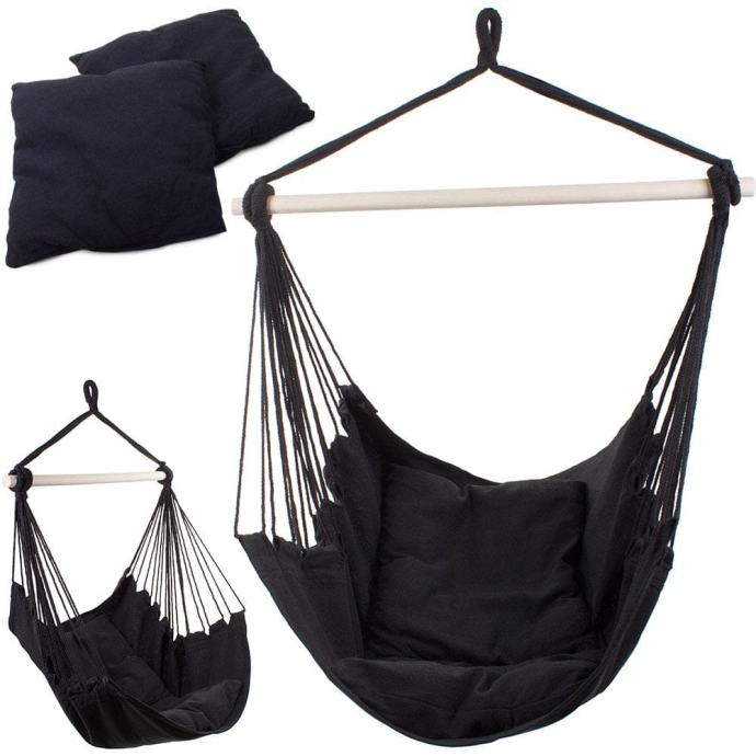 Brazilska viseća stolica mreža 130x100cm do 120kg + 2 jastuka crni