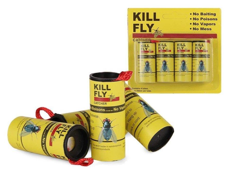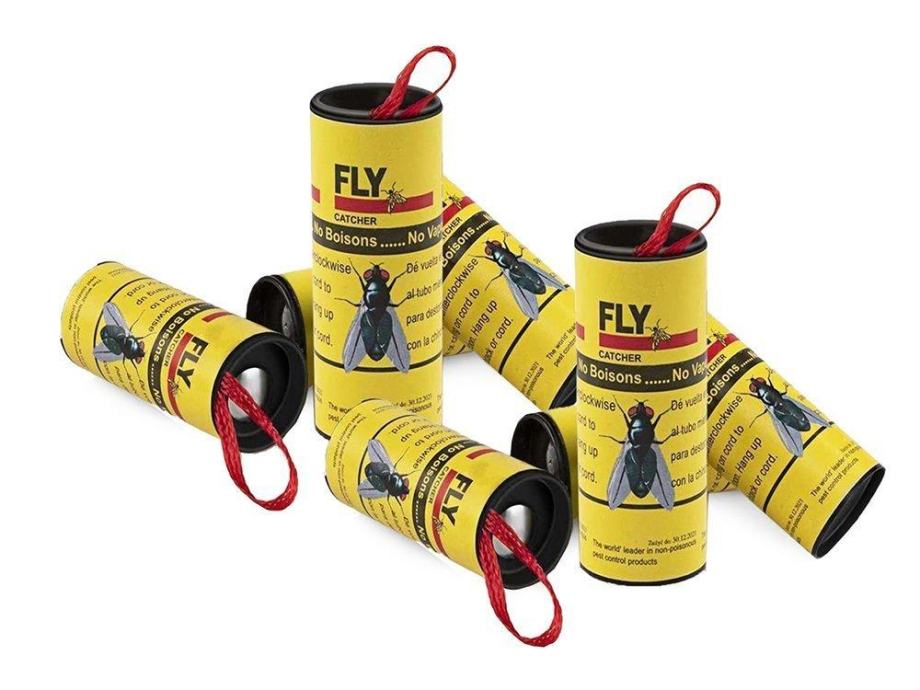 Flypaper je popularno sredstvo za borbu protiv letećih insekata, posebno muha. Ljepljivi materijal bioteralno je prekriven slojem snažnog ljepila na koji su insekti zalijepljeni. Najbolje je zalijepiti vrpcu ispod stropa, blizu izvora svjetlosti na kojem insekti lete.