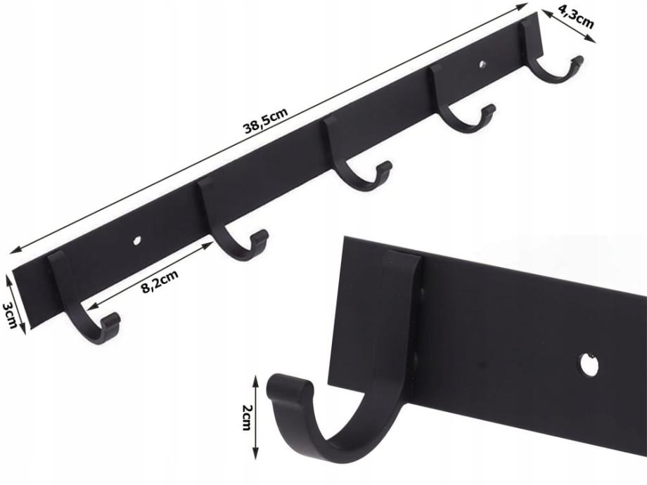 Dodajte funkcionalnost i stil u svoj prostor modernom crnom zidnom vješalicom, dugačkom 38 cm i opremljenom s 5 robusnih kuka za jednostavnu odjeću i pribor. Ova praktična vješalica dizajnirana je za svakodnevnu upotrebu jer vam omogućuje učinkovito organiziranje kaputa, jakni, torbi i još mnogo toga.