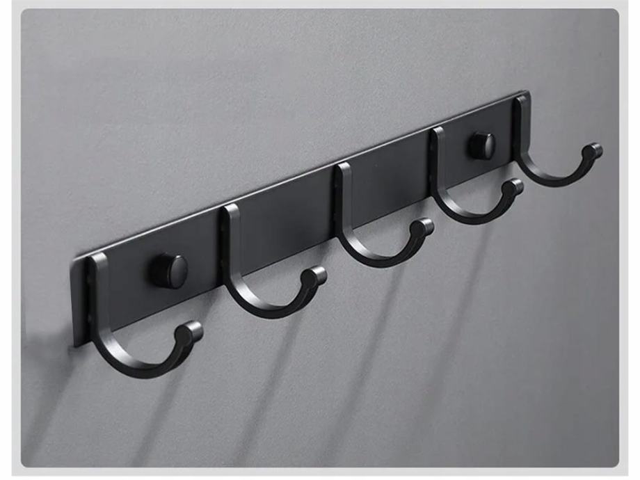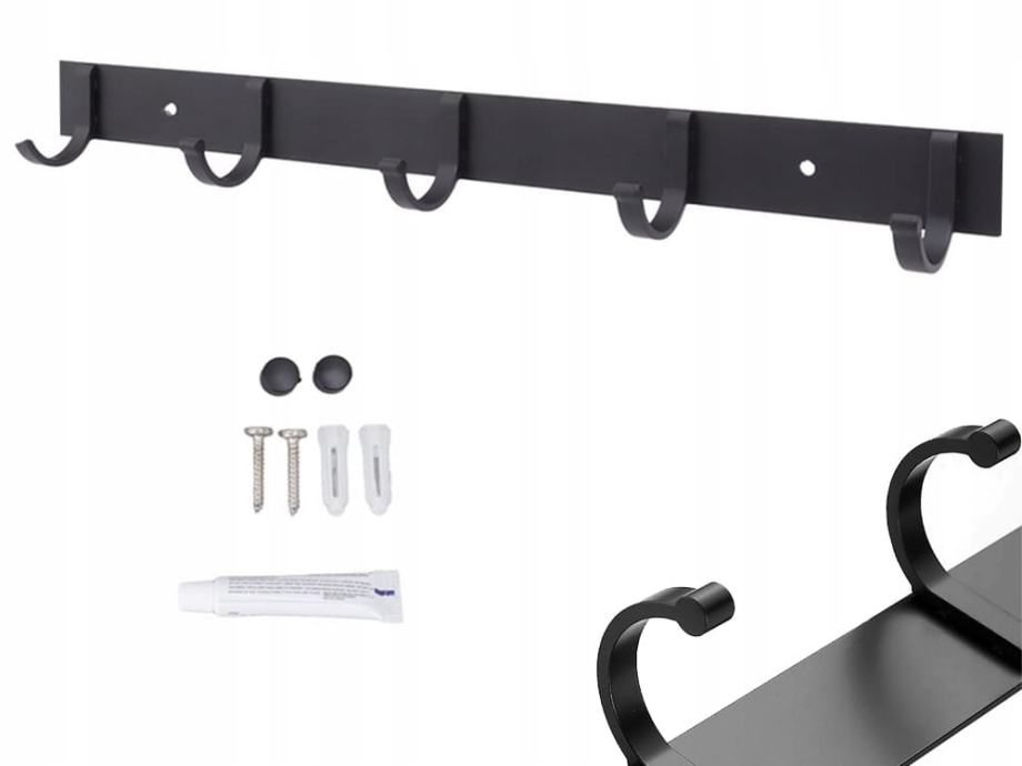 Crna zidna vješalica 38 cm za druženje odjeće 5x kuke