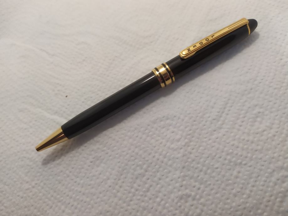 Završna obrada olovke je crna s pozlaćenim obrubom i prstenovima