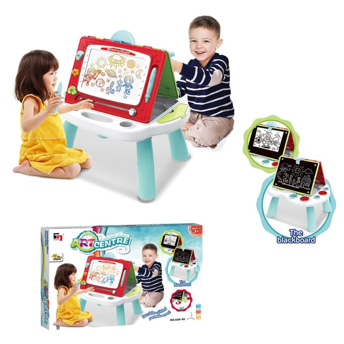Ova dvostrana ploča za crtanje izvrsna je za poticanje kreativne strane vašeg djeteta. Lako se sastavi u praktični stolić-štafelaj s prostorom za odlaganje pribora. Crtanje i bojanje potiče razvoj senzomotorike i ručnih vještina. Ploča će potaknuti djetetovu maštu i kreativnost, a ujedno će pružiti izvrsnu priliku za vježbanje držanja olovke, krede i bojica, što je korisno za pripremu za pisanje i školu, a sve to uz zabavnu aktivnost i igru.