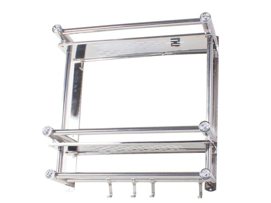Univerzalna polica za kupaonicu idealno je rješenje za uređivanje vaše kupaonice. Organizator ima dvije visoke police, tako da na njega možete staviti visoke stvari. Na dnu police nalaze se 4 kuke na kojima možete objesiti ručnike.