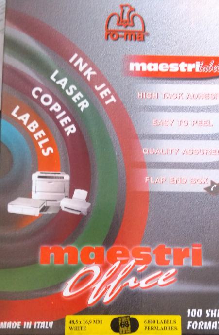 Otvoreno nekorišteno. 6800 naljepnica na 100 A4 stranice.