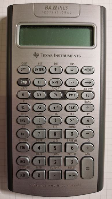 Prodajem potpuno ispravan, ušćuvan i minimalno korišten Financijski kalkulator Texas Instruments BA II Plus Professional. Kalkulator dolazi sa originalnim Texas Instruments crnim etuiem.