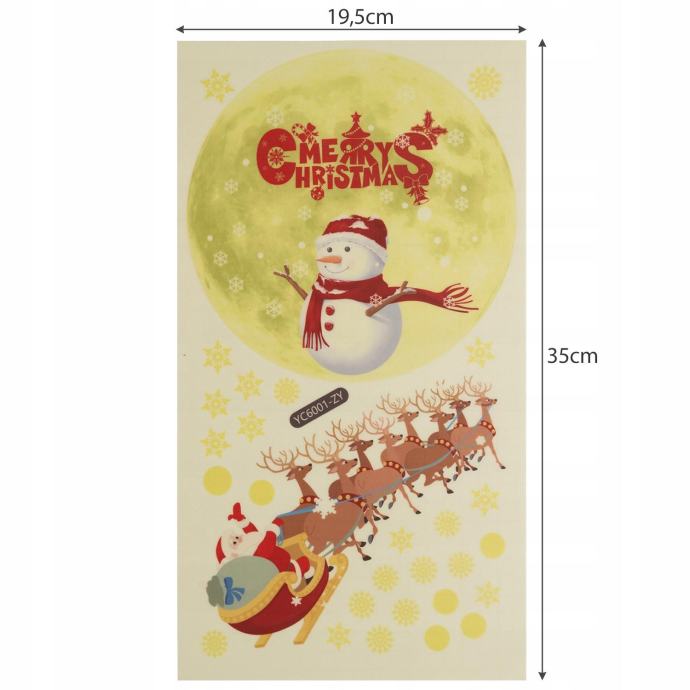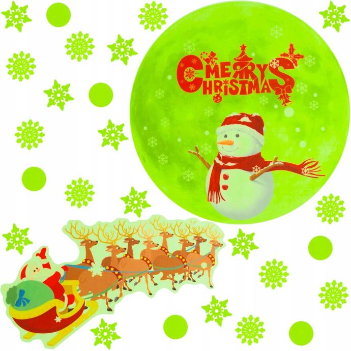 Specifikacija - Tema: Božić; Materijal: PVC; vezivo: samo -adhezivno ljepilo; Vodootporan: Da; Boja rasvjete: zelena; dimenzije 35x19,5 cm; Težina: 35G