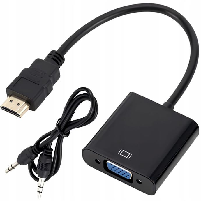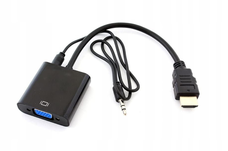Pretvarač slike visoke rezolucije iz HDMI signala u VGA signal (D-SUB) + Dodatni audio kabel! Uređaj pretvara HDMI digitalni signal u analogni signal VGA (nikad obrnuto). Pored toga, on pretvara digitalni zvuk HDMI u analogni stereo zvuk!