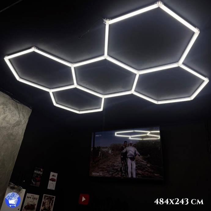 Z LED mrežo Hexagon 484×243 cm bo vaša garaža ali delavnica dobila profesionalno, čisto in izrazito osvetlitev, ki olajša delo in ustvari močan vizualni vtis.
