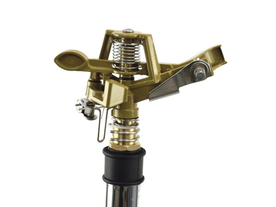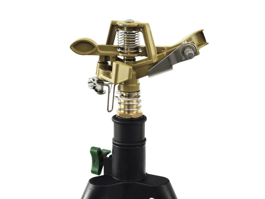 Čvrsta impulsna šprica u potpunosti od aluminija, čelika i mesinga. Montiran na postolje s podesivom visinom od 57 cm do 90 cm. Maksimalni promjer prskanja je 24 m, ovisno o tlaku vodenog mlaza. Stabilno aluminijsko postolje profilirao je savjete koji osiguravaju stabilnost raspršivača na mekim i neravnim podovima. Raspon navodnjavanja 30 do 360 ° podesiv je s dva metalna prstena. Jedinstvena prednost ovog spreja je tihi rad i učinkovit protok vode. Podesivi protok vode prema potrebama - od mlaza do raštrkane maglice.
