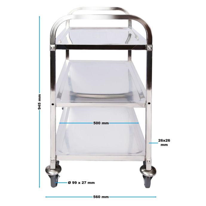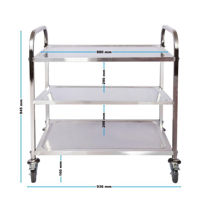 Ova kolica od nehrđajućeg čelika od 304 nudi ne samo elegantni dizajn, već je zbog stabilne konstrukcije i površine, što je lako očistiti, idealan je za svakodnevnu upotrebu u poslovnim i privatnim prostorima.