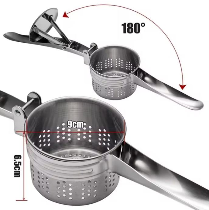 Pomoću našeg krumpira možete brzo i lako pripremiti savršeni pire krumpir, naribani krumpir ili druga jela od krumpira. Njegova snažna konstrukcija lako je naporno stisnuti krumpir, dok ergonomski dizajnirane ručke pružaju udoban prianjanje i stabilnu upotrebu.