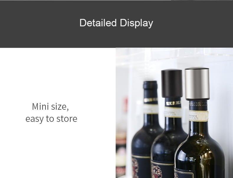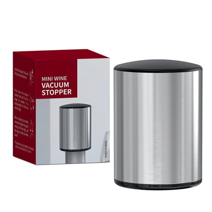 Vakuumski vinski čep koji pruža isti puni okus vina do 7 dana nakon otvaranja. Okrugli dizajn čepa zahvaljujući očuvanju vakuuma u potpunosti eliminira rizik od pijenja pića. Izvrsni pomagač za pohranu vina, savršen za upotrebu u restoranima, hotelima, barovima, klubovima, kafićima i kod kuće.
