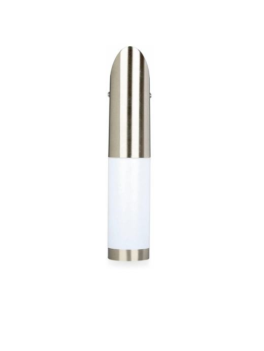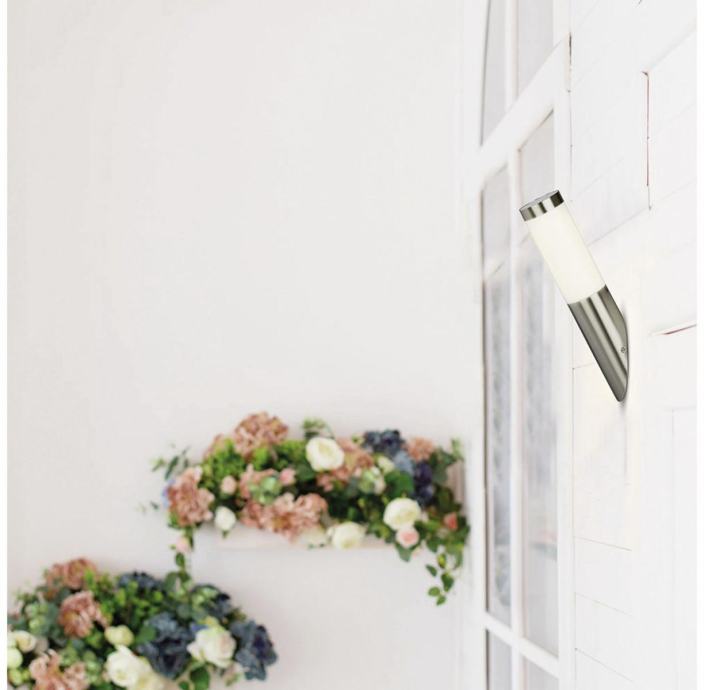 Zidna svjetiljka od nehrđajućeg čelika s plastičnom nijansom za vanjsku upotrebu.