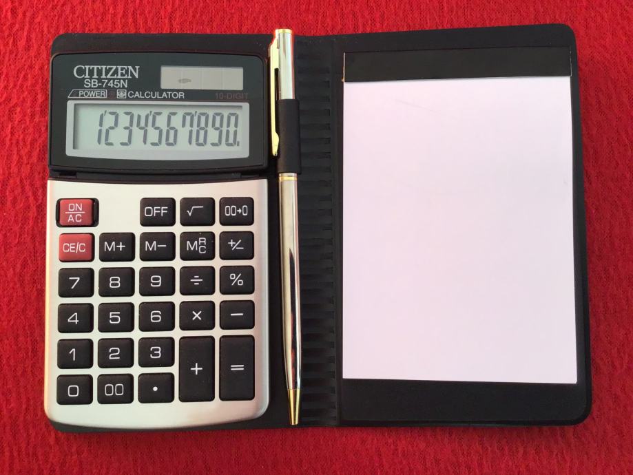 Džepni kalkulator s notesom, kemijskom olovkom, u koricama, CITIZEN SB-745N.