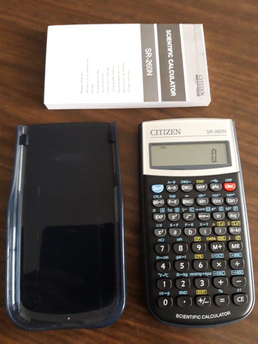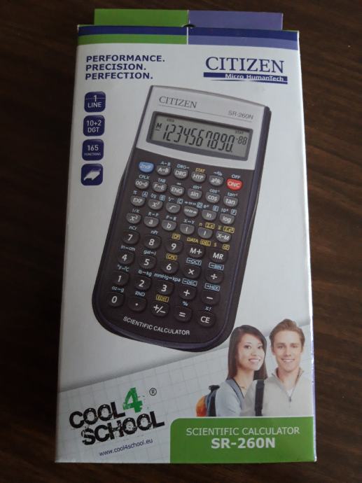 Novi, nikad korišteni kalkulator CITIZEN SR-260N, 165 funkcija,, 10+2 mjesta, 1 linijski displej, crni, standardni model, dim: 154x80x14mm, tvrde korice, izvor napajanja: baterija migron LR44x2.