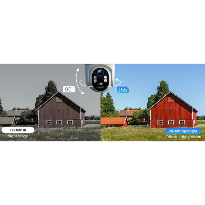 Fleksibilna rotacija kamere za 355° vodoravno i 90° okomito omogućuje potpunu pokrivenost područja. Inteligentna detekcija pokreta s rasponom od 25 metara osigurava visoku razinu sigurnosti.