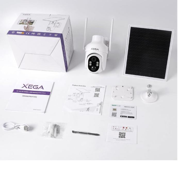 Instalacija XEGA 4G LTE kamere je brza i jednostavna. Preuzmite Ubox aplikaciju s Google Playa ili App Storea, registrirajte korisnički račun, umetnite Nano-SIM karticu i SD karticu do 128GB, uključite kameru i povežite je skeniranjem QR koda. Vaša imovina je sada nadzirana, a vi imate pristup uživo i mogućnost dijeljenja snimki s drugima.