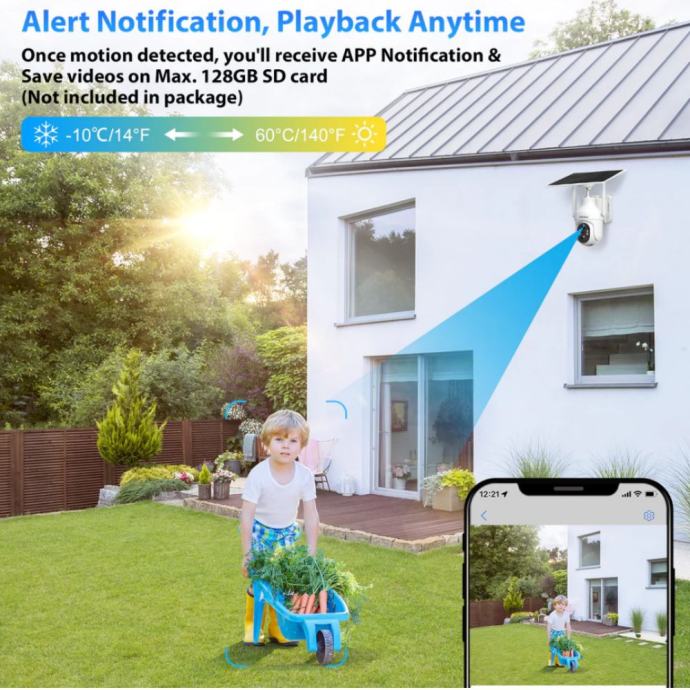 Opremljene solarnim panelom od 6 W i baterijama od 10400 mAh, XEGA 4G LTE kamere su samoodržive čak i u uvjetima slabog sunčevog svjetla. Bez brige o vremenskim prilikama, ova kamere mogu raditi dulje vrijeme bez potrebe za punjenjem. S priključnim kabelom od 3 metra, solarni panel može se postaviti na najpogodnije mjesto kako bi osigurao optimalnu punjenje baterije.